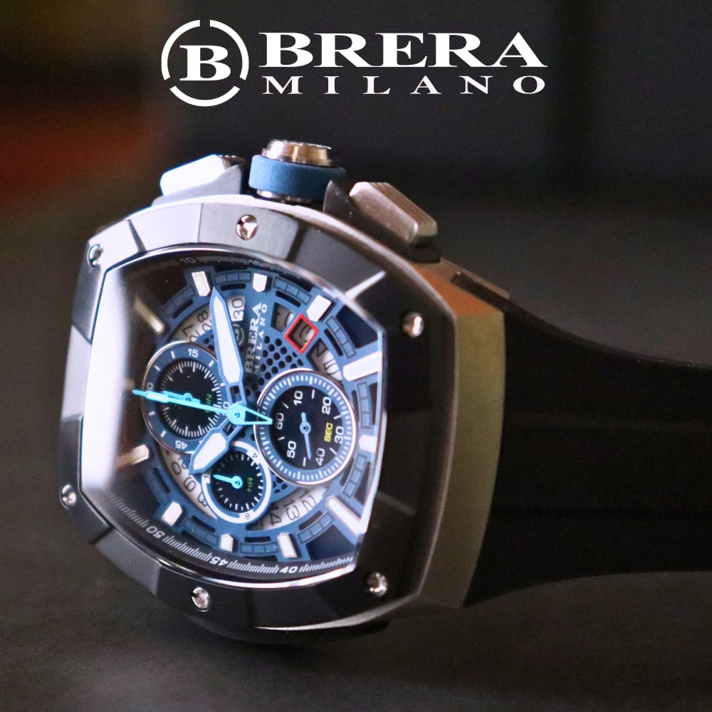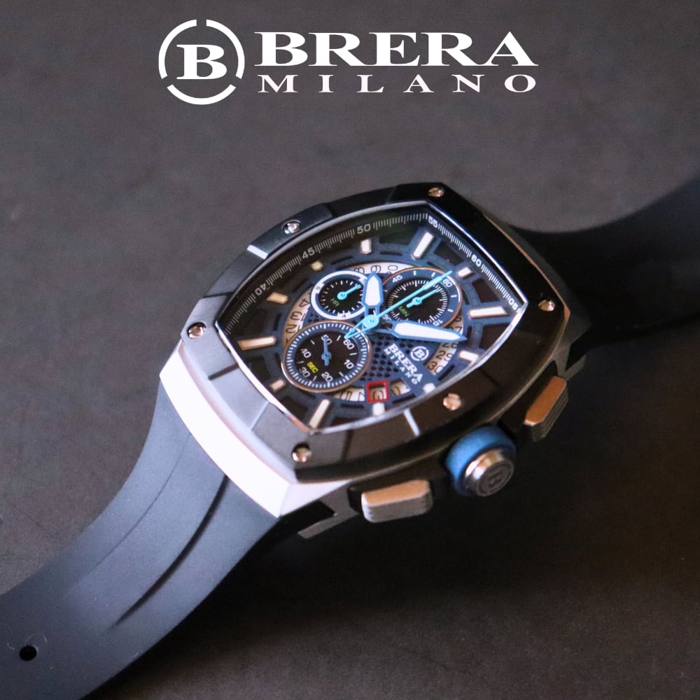 BRERA MILANO ブレラ ミラノ SUPERSPORTIVO TONNEAU QUARTZ CHRONOGRAPH スーパースポルティーボ トノー クォーツ クロノグラフ 腕時計 防水 ラバーベルト メンズ ブランド時計 BMSSTNQC4101