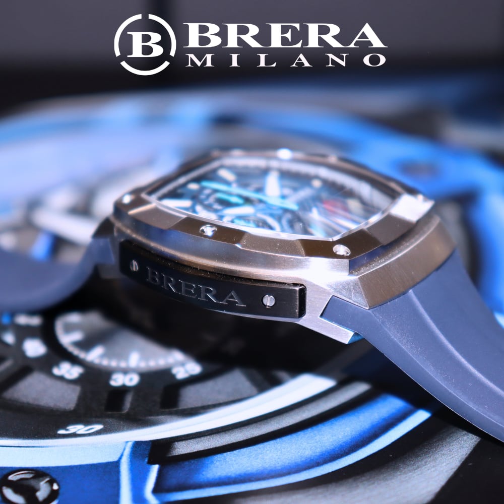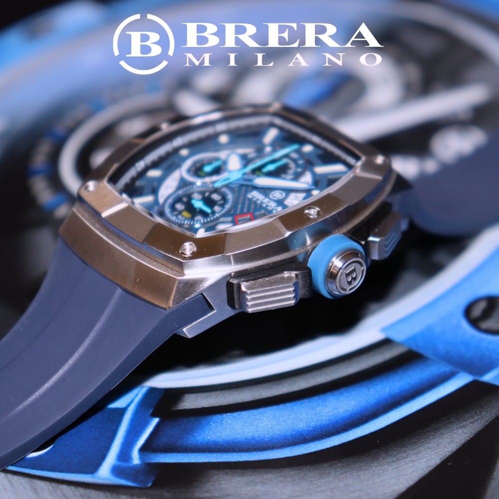 BRERA MILANO SUPERSPORTIVO TONNEAU QUARTZ CHRONOGRAPH BMSSTNQC4101B ブレラミラノ スーパースポルティーボ トノー クォーツ クロノグラフ 腕時計 ラバーベルト 青色