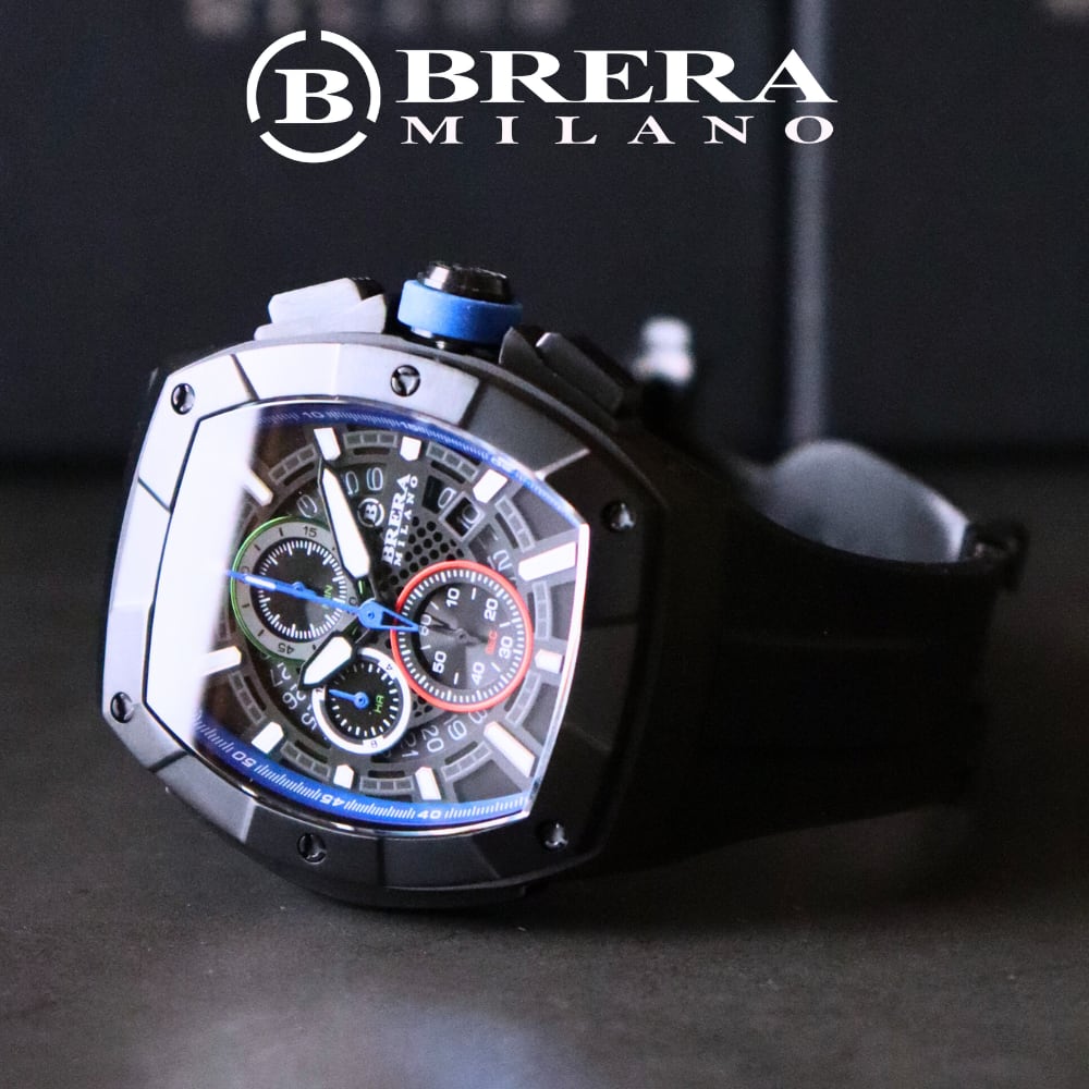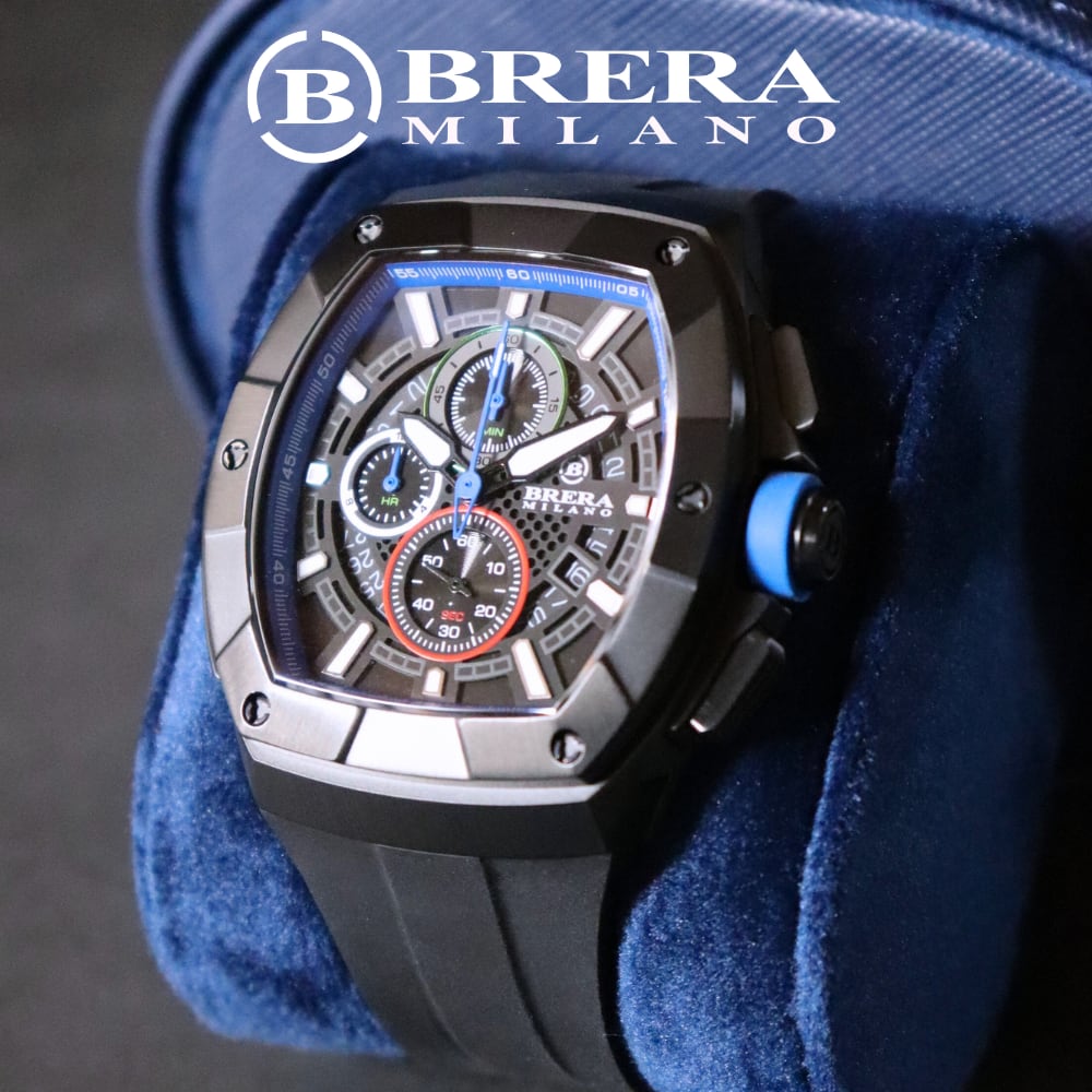 BRERA MILANO ブレラ ミラノ SUPERSPORTIVO TONNEAU QUARTZ CHRONOGRAPH スーパースポルティーボ トノー クォーツ クロノグラフ 腕時計 防水 ラバーベルト メンズ ブランド時計 BMSSTNQC4103
