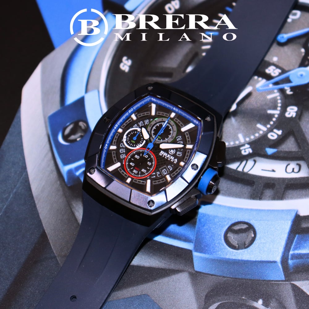 BRERA MILANO ブレラ ミラノ SUPERSPORTIVO TONNEAU QUARTZ CHRONOGRAPH スーパースポルティーボ トノー クォーツ クロノグラフ 腕時計 防水 ラバーベルト メンズ ブランド時計 BMSSTNQC4103A