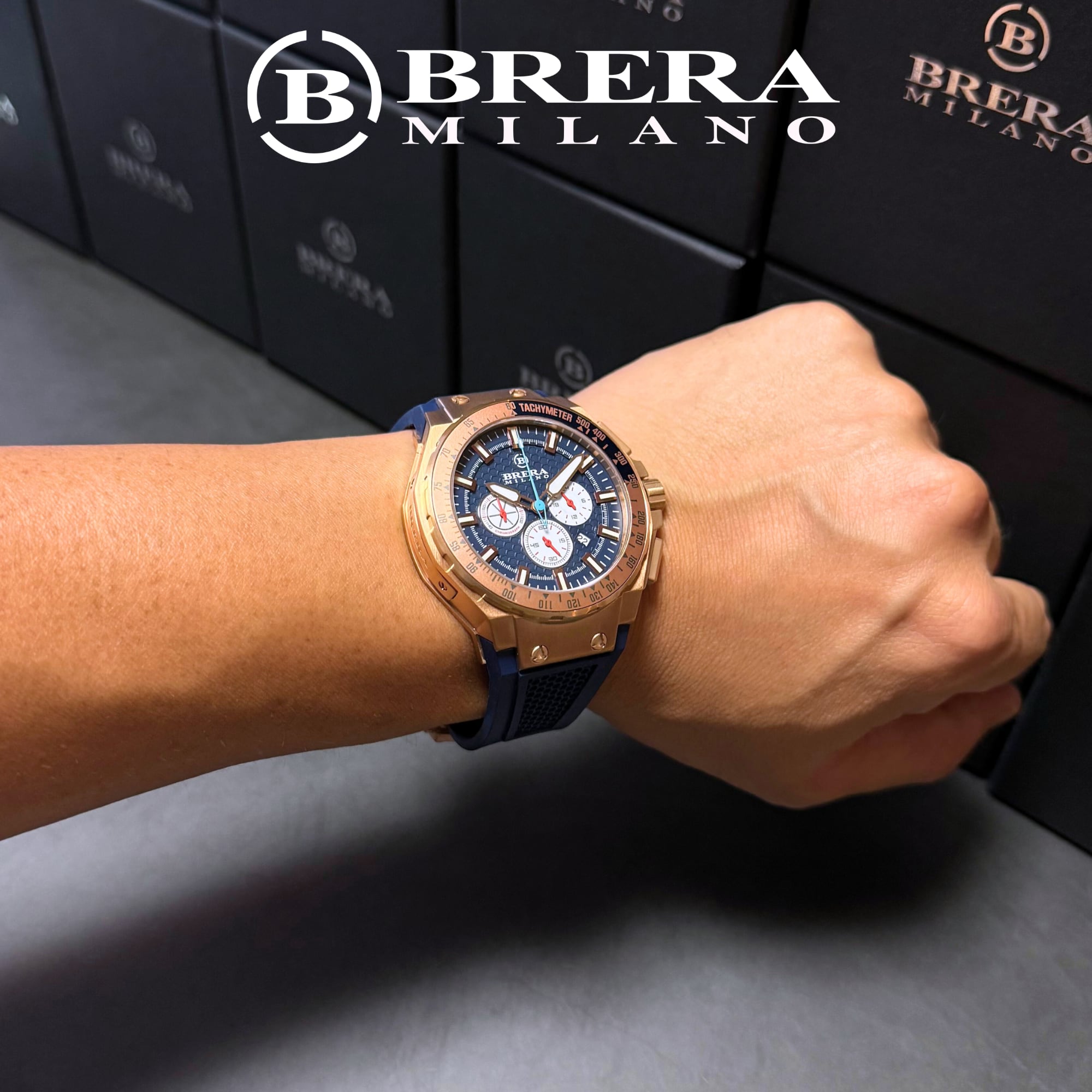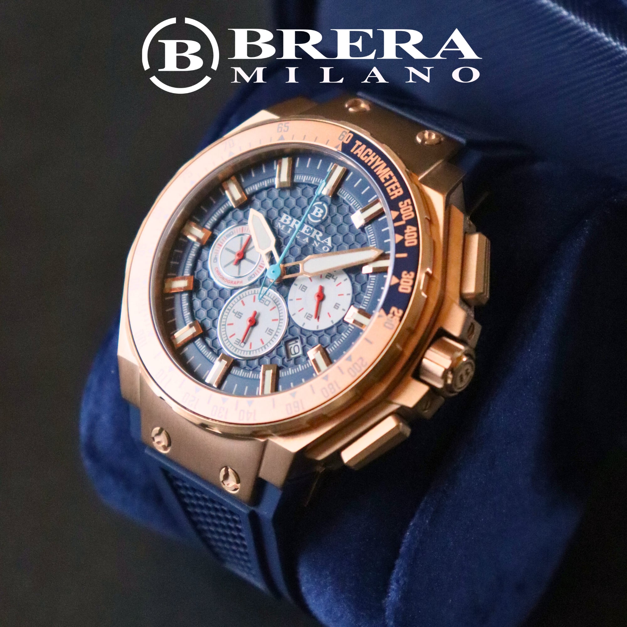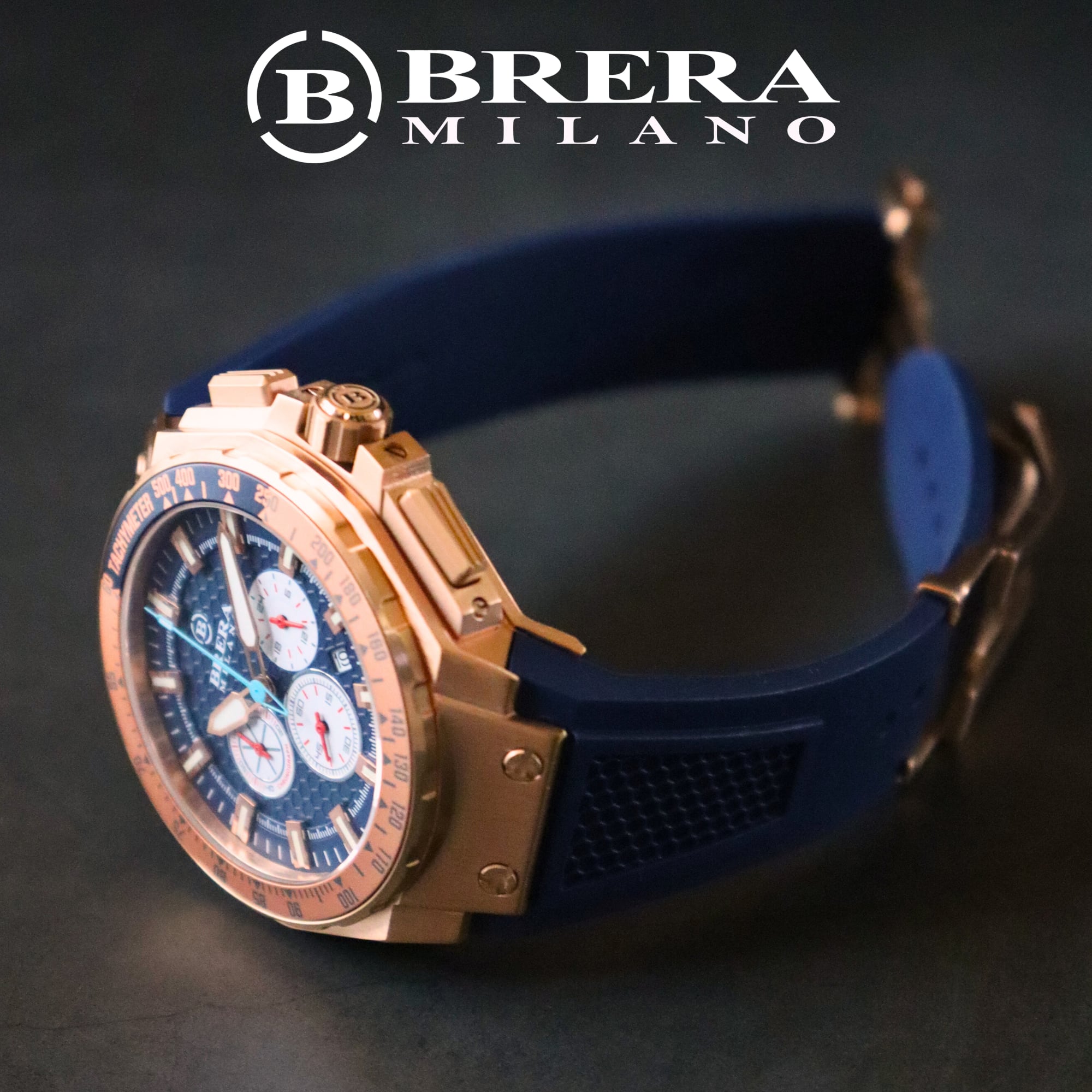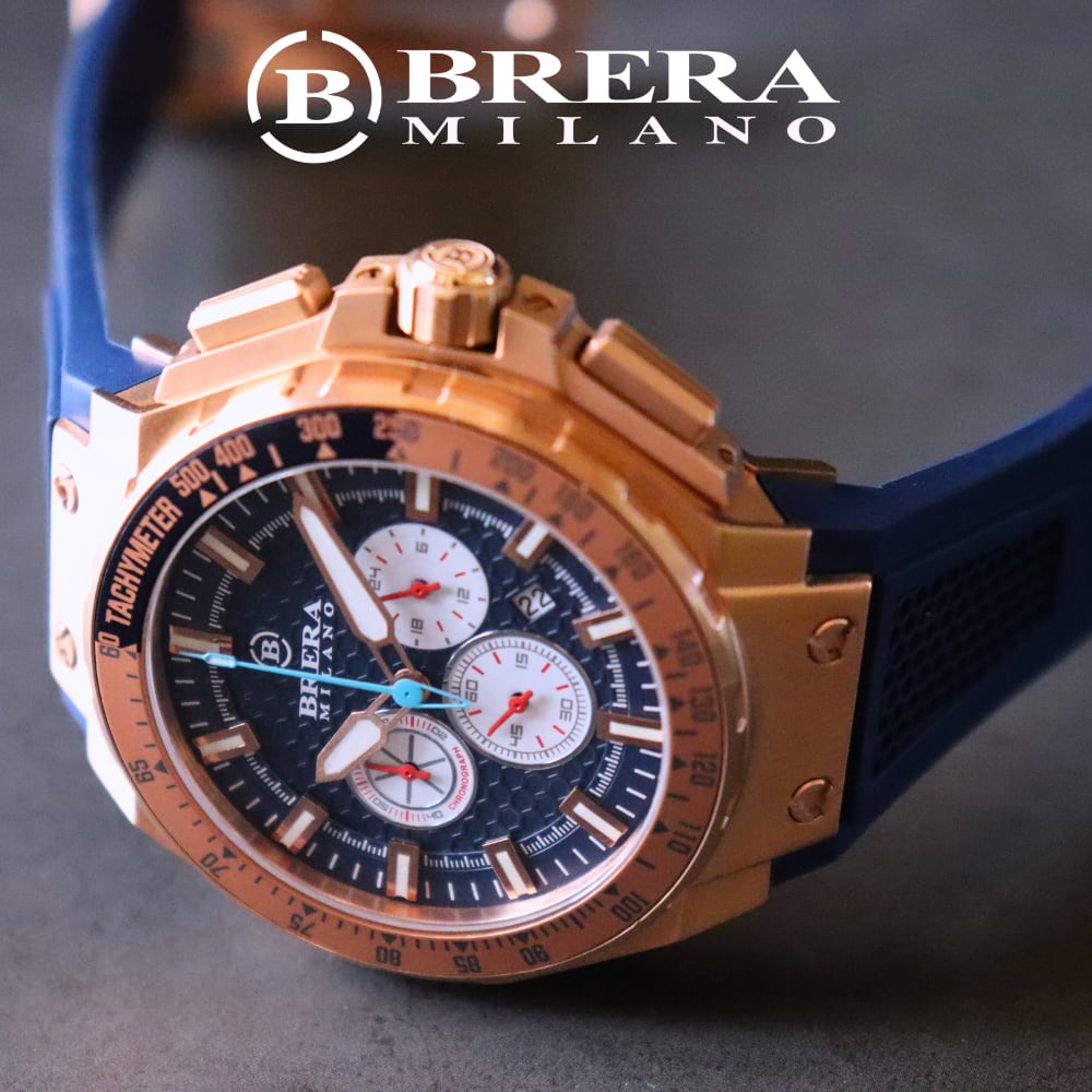 BRERA MILANO GRANTURISMO GT2 QUARTZ CHRONOGRAPH BMGTQC4506 ブレラミラノ グランツーリスモ GT2 クォーツ クロノグラフ 腕時計 ラバーベルト 青色