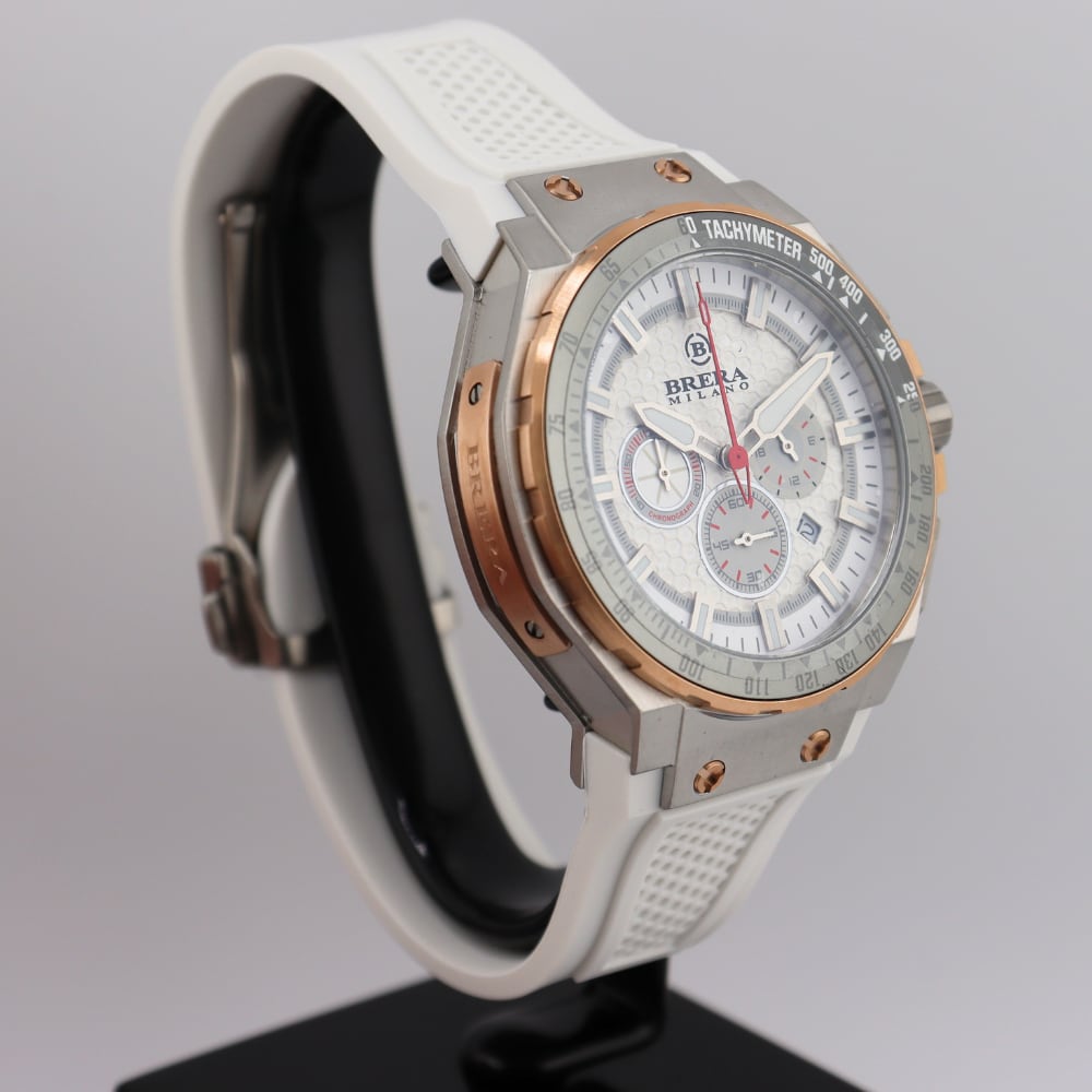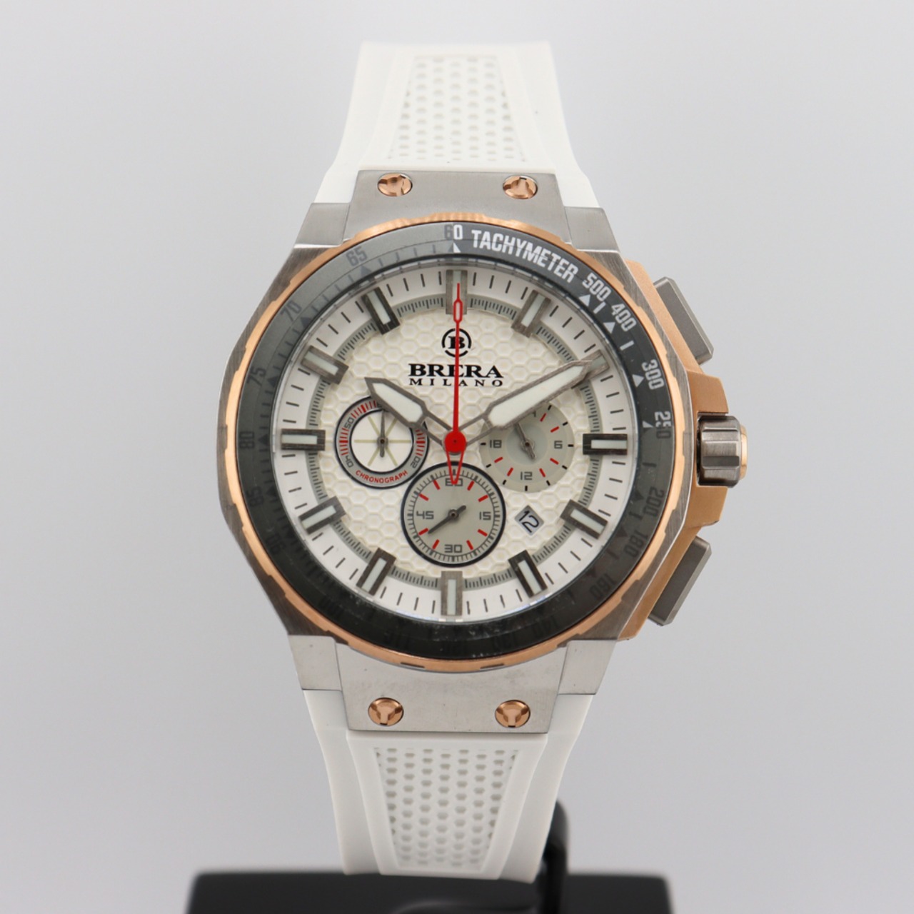 BRERA MILANO GRANTURISMO GT2 QUARTZ CHRONOGRAPH BMGTQC4505 ブレラミラノ グランツーリスモ GT2 クォーツ クロノグラフ 腕時計 ラバーベルト 白