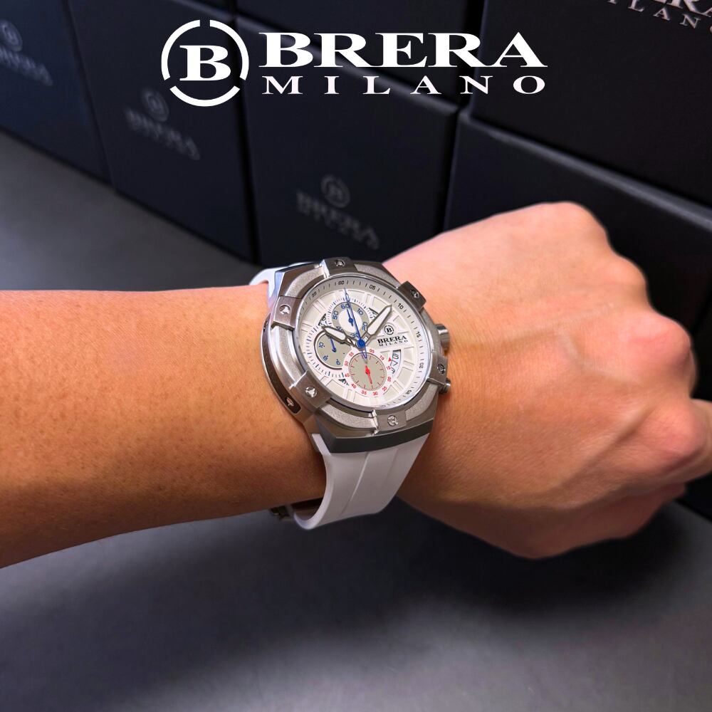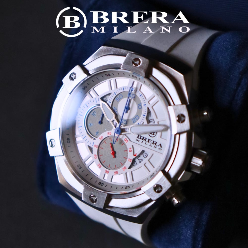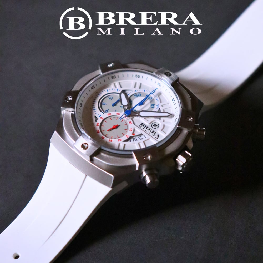 BRERA MILANO SUPERSPORTIVO EVO QUARTZ CHRONOGRAPHは、スポーティーでありながら洗練されたデザインが魅力の腕時計です。このモデルは、高精度のクォーツムーブメントとクロノグラフ機能を搭載しており、日常使いからスポーツシーンまで幅広く活躍します。また、耐久性に優れたラバーベルトを採用しているため、快適な装着感を提供します。