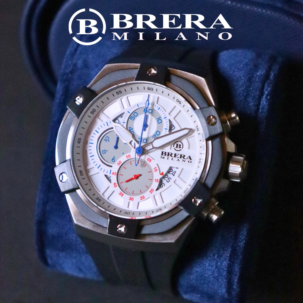 BRERA MILANOはイタリアのミラノに工場を構えるブランドで、その歴史と伝統に裏打ちされた技術と美学が、このSUPERSPORTIVO EVO QUARTZ CHRONOGRAPHに反映されています。ブランド独自のストーリーを感じさせるこの一本は、スポーツ愛好家やファッション愛好家にとって、欠かせないアイテムとなること間違いありません。