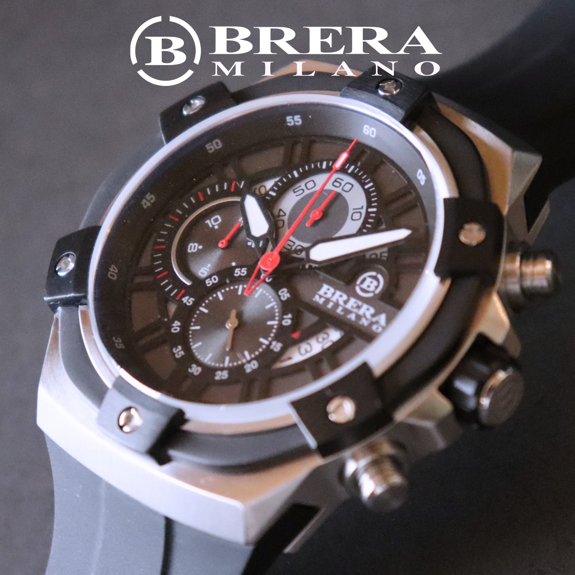 BRERA MILANO ブレラミラノ SUPERSPORTIVO EVO QUARTZ CHRONOGRAPH スーパースポルティーボ エヴォ クォーツ クロノグラフ 腕時計 防水 正規品 メンズ ブランド時計 ラバーベルト BMSSQC4501