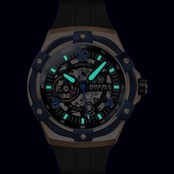 また、裏面がスケルトン設計になっているため、時計の心臓部であるムーブメントの精緻な動きを楽しむことができ、機械式時計ならではの魅力を感じられます。