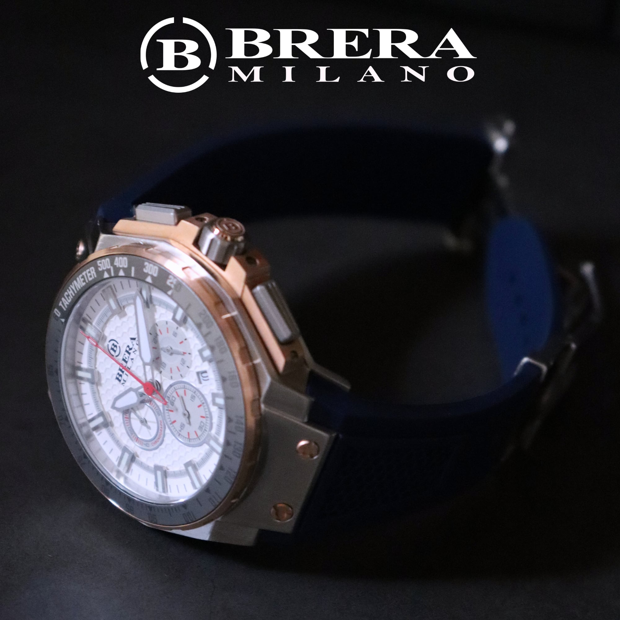 BRERA MILANO GRANTURISMO GT2 QUARTZ CHRONOGRAPH BMGTQC4505C ブレラミラノ グランツーリスモ GT2 クォーツ クロノグラフ 腕時計 ラバーベルト 青色