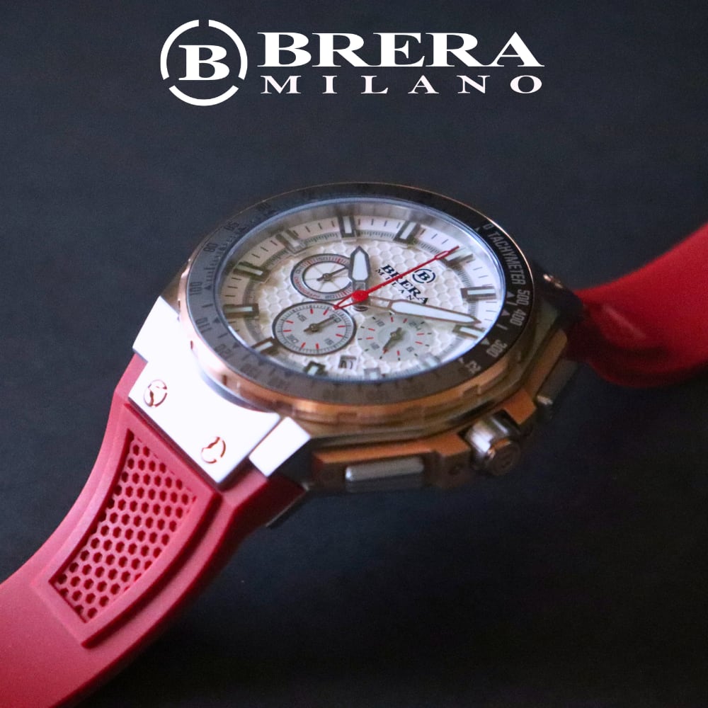 BRERA MILANO GRANTURISMO GT2 QUARTZ CHRONOGRAPH BMGTQC4505A ブレラミラノ グランツーリスモ GT2 クォーツ クロノグラフ 腕時計 ラバーベルト 赤